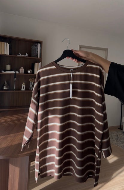 T-shirt long à rayures, à la fois confortable et tendance.